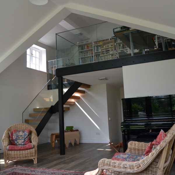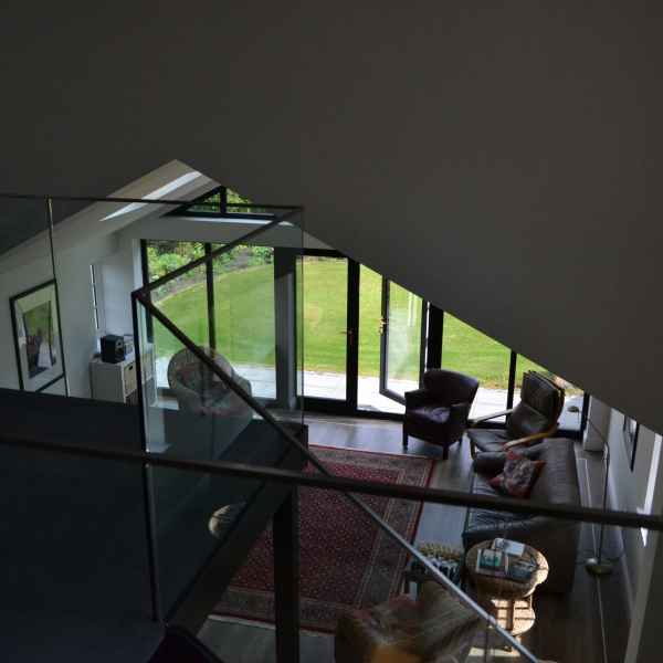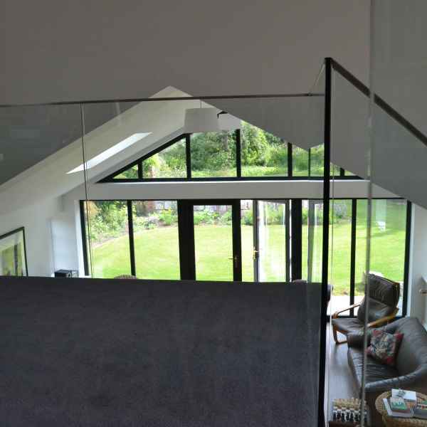The client wished to replace with a larger and more modern extension taking advantage of the garden. The new extension comprises a garden lounge room and mezzanine study with glass balustrade. A fully glazed rear gable elevation maximises view and access into the garden.