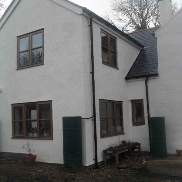 Previous inappropriate extensions were removed and replaced with building works more in keeping. The retained building was sensitively renovated, exposing architectural features. The design incorporated sheeps wool insulation, oak lintels and staircase, lime-based render, and exposed feature stonework internally.